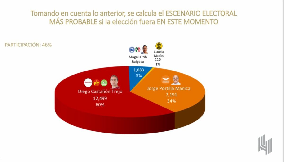 Jorge Portilla Manica, de Movimiento Ciudadano, alcanzaría un respaldo de solo el 34 por ciento. La alianza del PRI-PAN tendría solo 5%, mientras que el PRD sería de 1%, según el estudio.