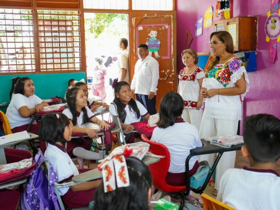 Desde temprana hora, la primera mujer gobernadora de Quintana Roo llegó a la primaria recorriendo salón por salón, escuchando a las niñas y a los niños, entregándoles sus mochilas y sus útiles. En esta escuela distribuyeron 505 mochilas, 505 paquetes de útiles escolares y 505 uniformes.