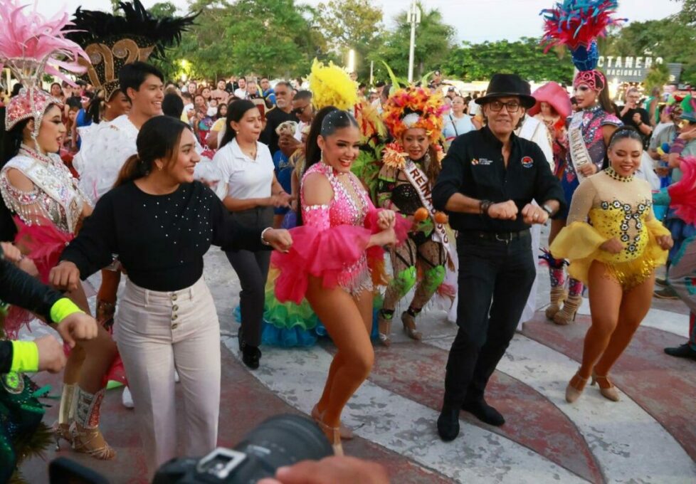 Seguido de esta acción, autoridades municipales y cancunenses que engalanarán el Carnaval 2025, se unieron y llenaron de fiesta la Zona Fundacional de la ciudad al bailar al ritmo de salsa, merengue, bachata, entre otros géneros musicales.