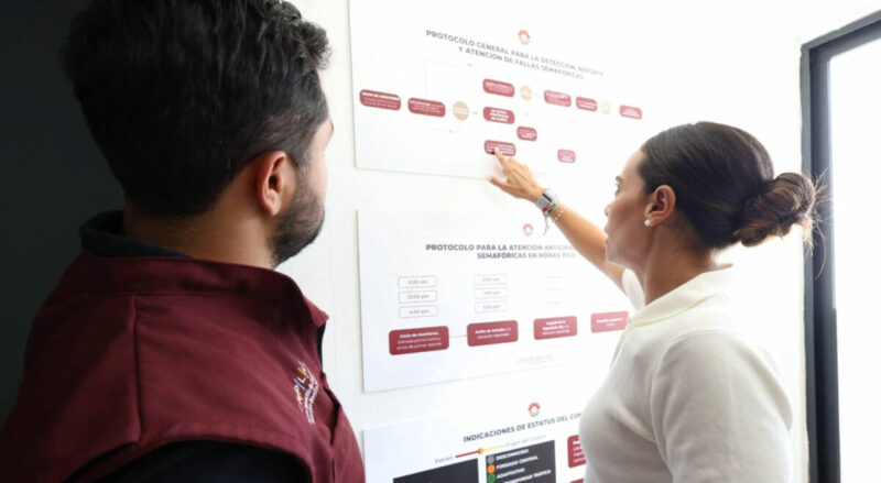 “Estamos en el Centro de Control y Monitoreo de Semáforos de Cancún. Hoy contamos con una red de semáforos monitorizados que nos permite ver en tiempo real cómo están funcionando, si alguno presenta fallas y aplicar un protocolo de atención inmediata”, comentó.