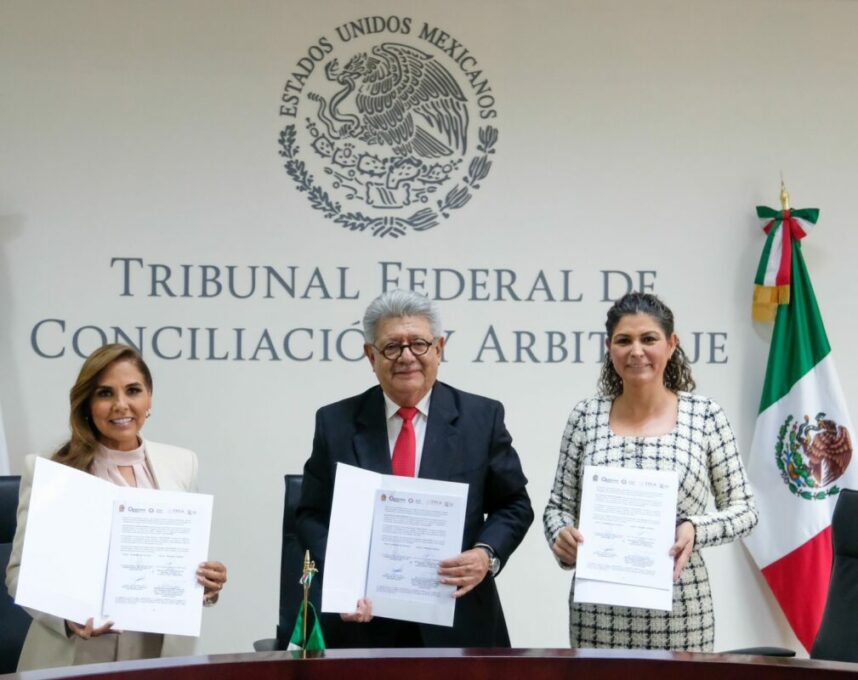 CIUDAD DE MÉXICO.- Para velar por la protección de los derechos de los trabajadores quintanarroenses, la gobernadora Mara Lezama Espinosa firmó un convenio de colaboración entre el Gobierno del Estado y el Tribunal Federal de Conciliación y Arbitraje que permitirá contar con personal calificado en materia del Nuevo Sistema de Justicia Laboral para atender a la ciudadanía.