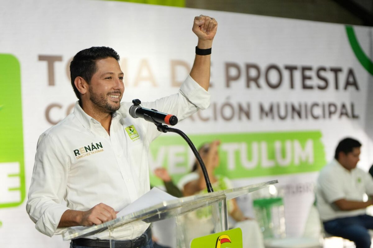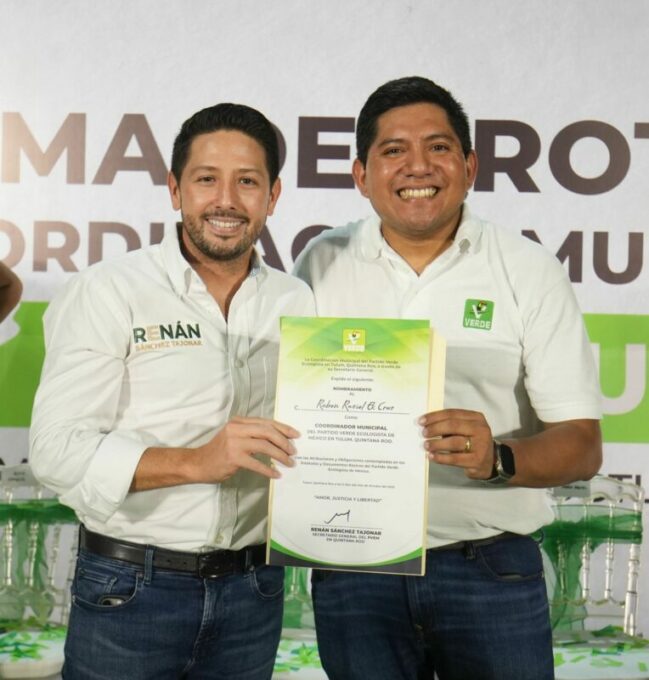 Tulum, Quintana Roo.– El dirigente estatal del Partido Verde en Quintana Roo, Renán Sánchez Tajonar, encabezó la toma de protesta de la nueva dirigencia municipal del Partido Verde en Tulum, donde resaltó la fuerza, la unidad y el compromiso de la familia Verde en todo el estado.
